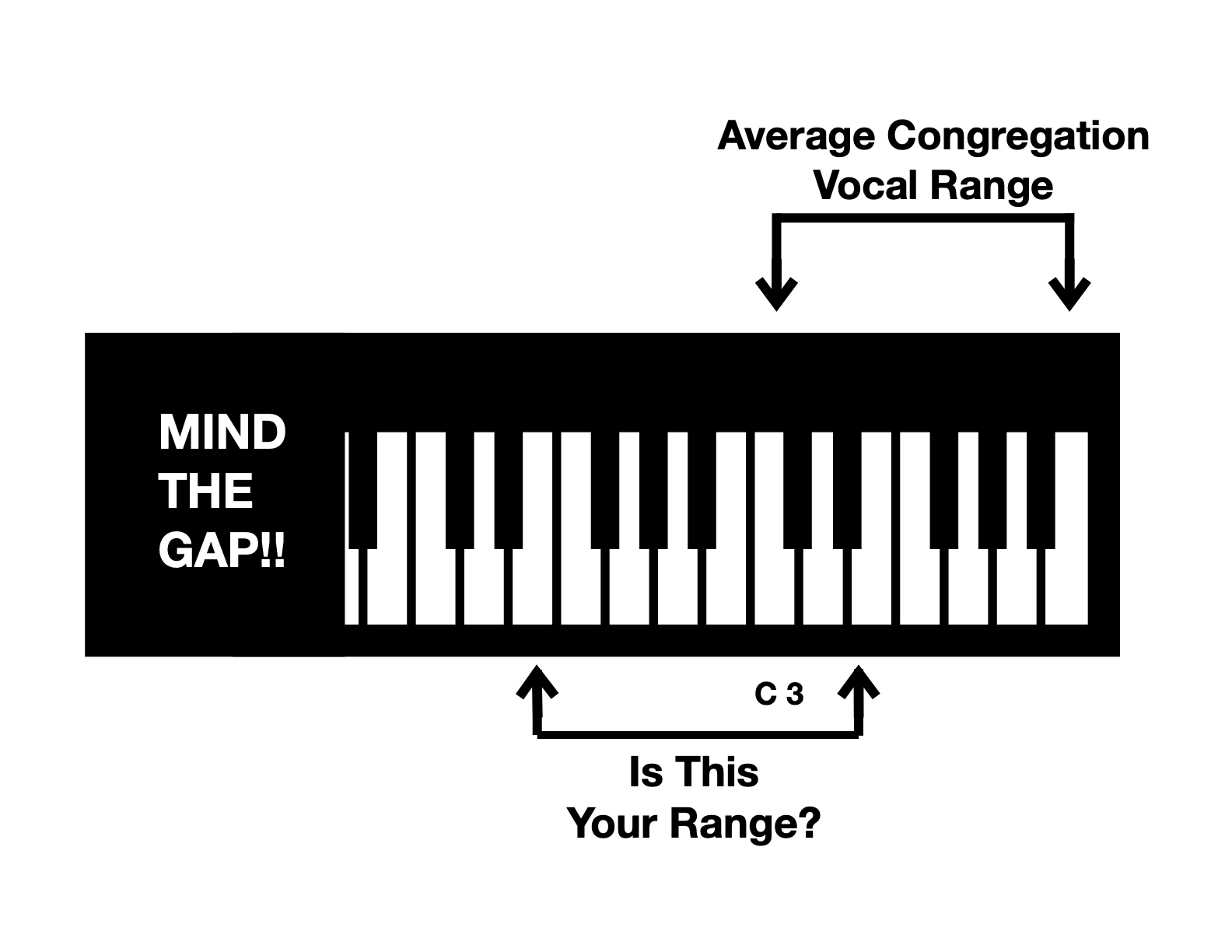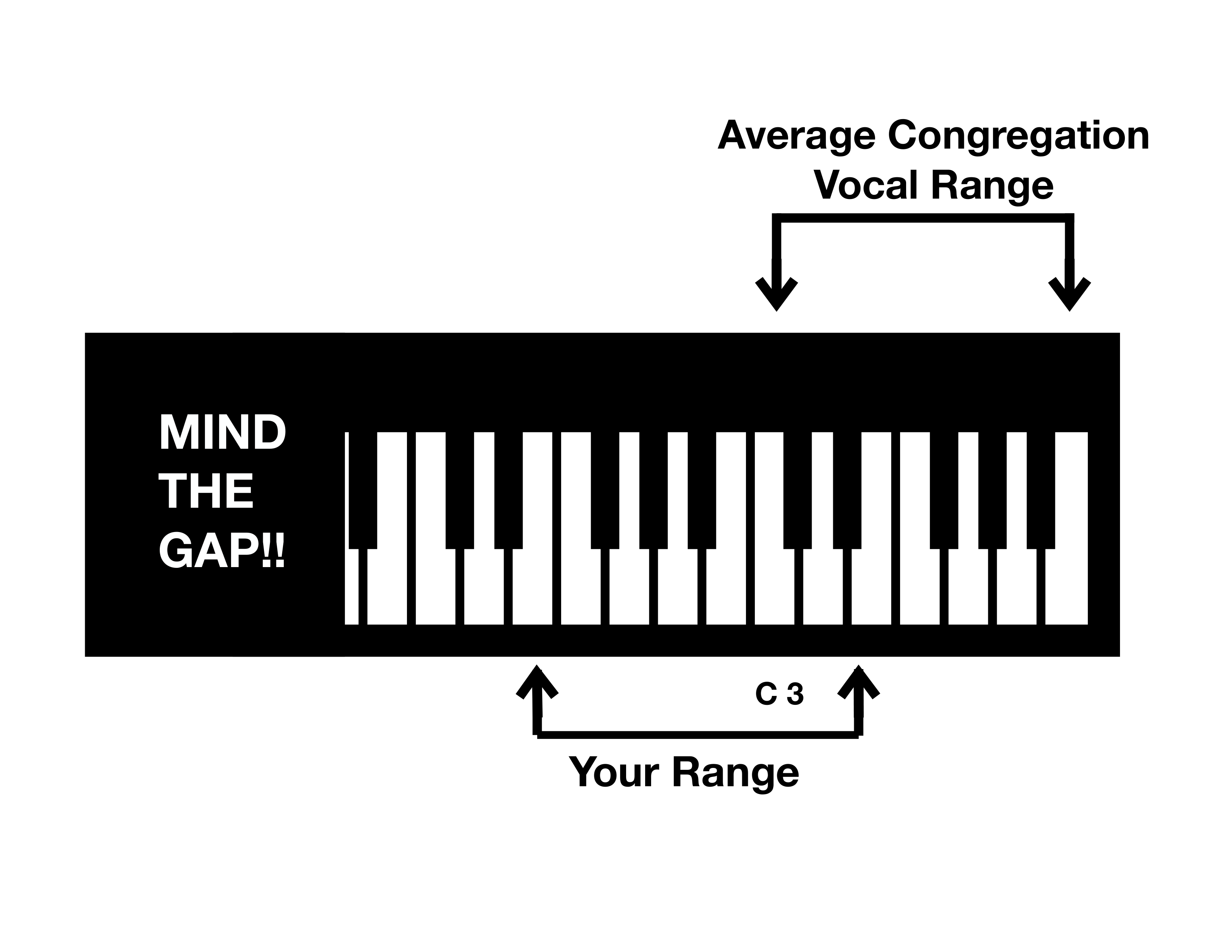 - Analyze the vocal range of a song you have chosen for Sunday, and notice the range of notes. Then move the range around the scale until you find a range that more nearly fits the “average” on the chart above. Decide what key you will need to play in. If you do not like playing in flats (or sharps), move the range up or down a half step. You should be able to find a key you can easily play in.