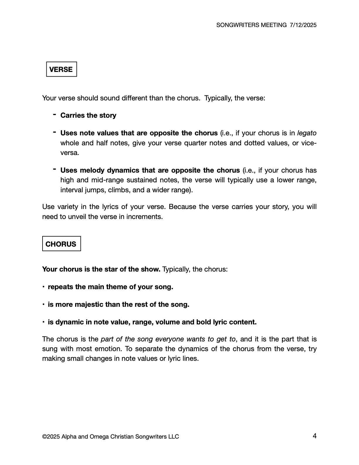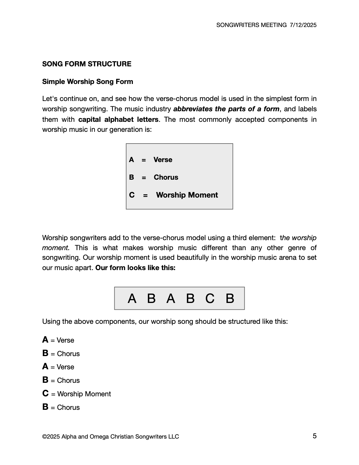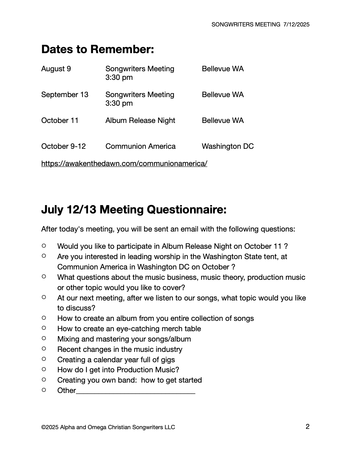 • Songwriters Meeting